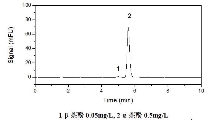 FLD激發(fā)波長(zhǎng)(nm):230,發(fā)射波長(zhǎng)(nm):460(α-萘酚分析條件)、360(β-萘酚分析條件)
