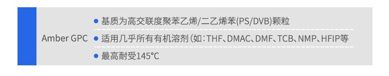Amber系列色譜柱是依利特新推出的尺寸排阻色譜柱,包括用于水相的Amber SEC系列和用于有機相的Amber GPC系列。