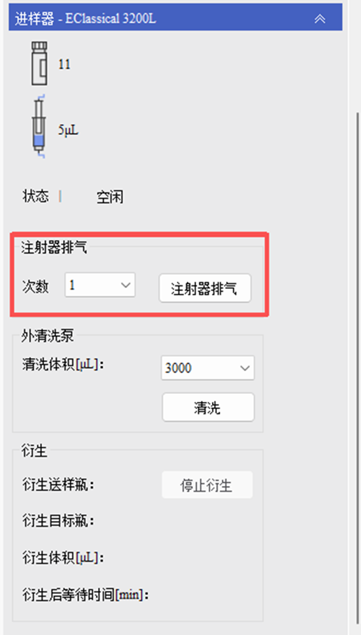 依利特Kromstation軟件“針清洗”程序界面,點(diǎn)擊注射器排氣即可進(jìn)行進(jìn)樣針和閥的清洗