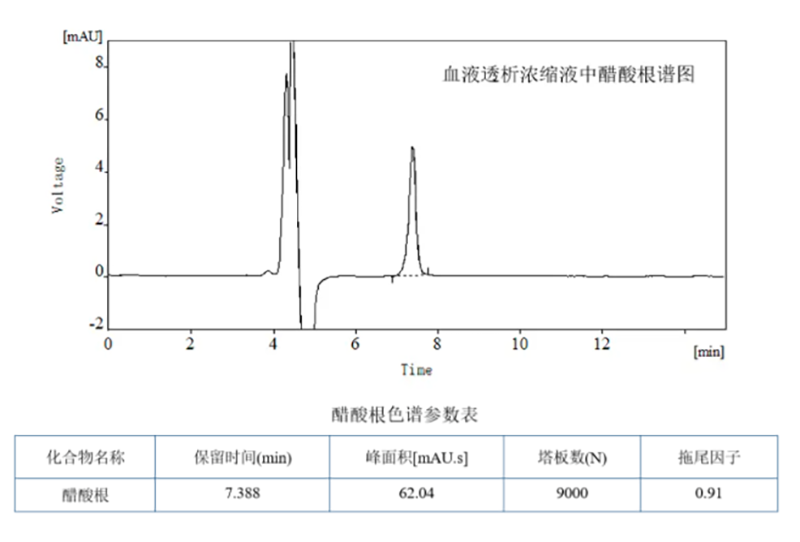 醋酸根:按A:B:水:流動(dòng)相=1:1.225:16.388:16.387(v/v)的比例稀釋,以0.45μm膜過濾,測(cè)定。