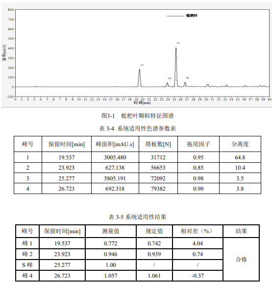 由此可見(jiàn),使用依利特 EClassical 3200 高效液相色譜儀以及 Supersil AQ-C18 色譜柱,測(cè)得的枇杷葉配方顆粒的特征圖譜滿足藥典要求。