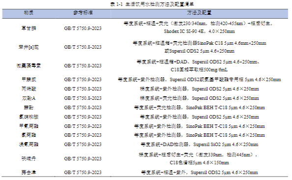 附錄文件:GB5749-2022、GB/T 5750-2023 標準原文節(jié)選、儀器校準證書模板、耗材訂貨清單(色譜柱、濾膜、試劑型號編碼)。