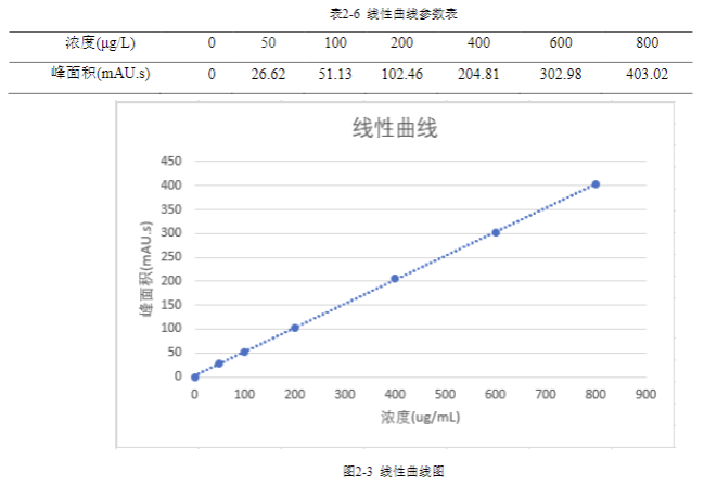 所得曲線方程為 y=0.5034 x+1.2352,r=0.9999,大于 0.9995,在 0-800μg/L 之間具有良好的線性關(guān)系。