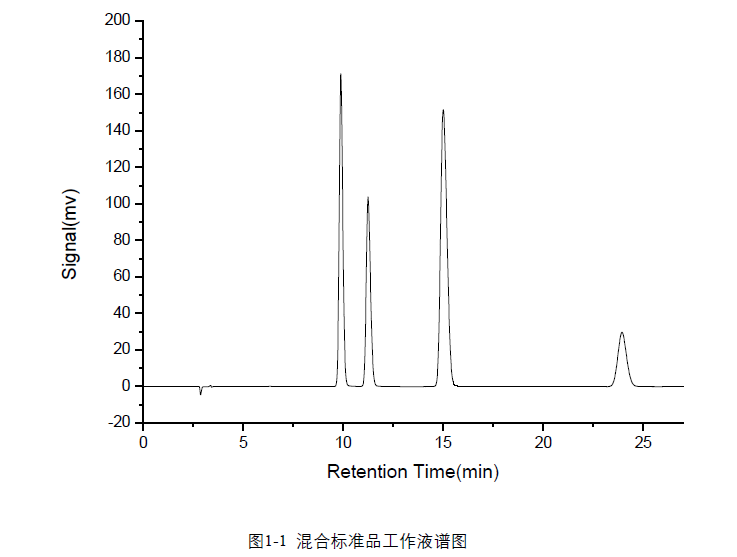 進樣分析濃度為10.0μg/mL混合標準品工作液,使用上述色譜條件,結(jié)果如下圖所示。