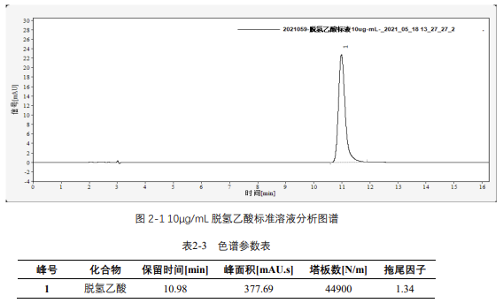 圖 2-1 10μg/mL 脫氫乙酸標準溶液分析圖譜