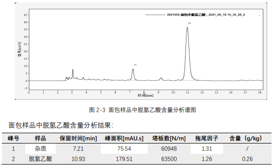 參考標準:GB 5009.121-2016《食品安全國家標準 食品中脫氫乙酸的測定》,分析全麥夾心面包中脫氫乙酸的含量