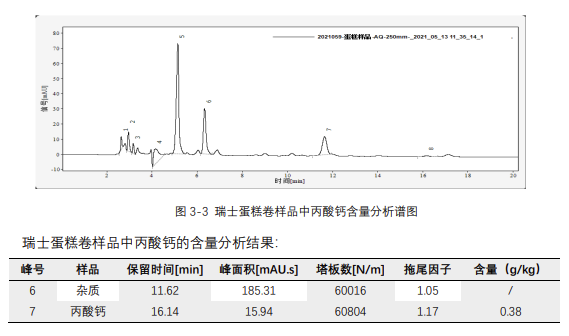 參考標準:GB 5009.120-2016《食品安全國家標準 食品中丙酸鈉、丙酸鈣的測定》,分析瑞士蛋糕卷中丙酸鈣的含量
