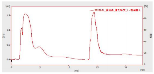 本實驗參考食品安全國家標準 食用油中極性組分 (PC) 的測定 (GB 5009.202-2016) 對食用油中極性組分 (PC) 進行測定,結(jié)果顯示食用油中非極性樣品峰結(jié)束時間在 6.7 min,符合 GB 5009.202-2016 標準要求。