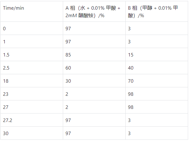 色譜柱:Brownlee SPP C18 100×2.1mm,2.7μm(貨號(hào):N9308404)?