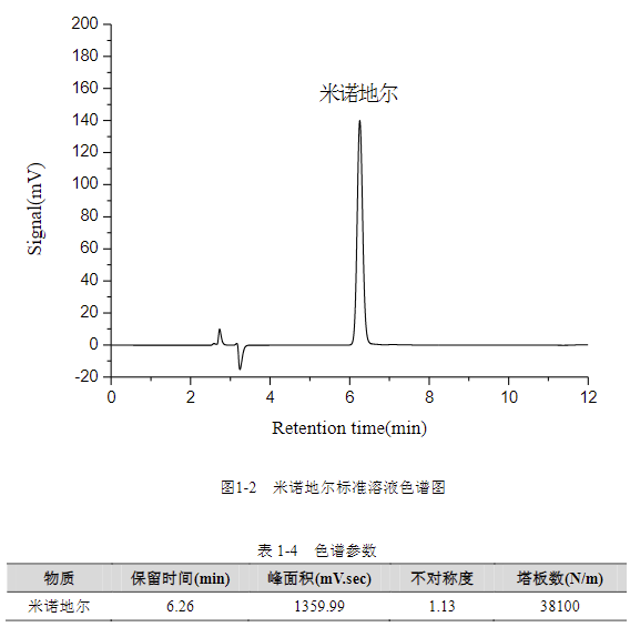 從以上結(jié)果可知,米諾地爾分析速度快,不對(duì)稱(chēng)度好,柱效高,故該方法適合于米諾地爾的分析。