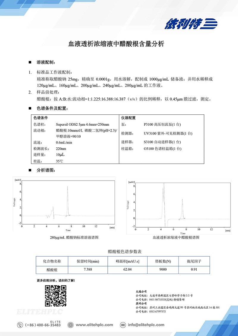 血液透析濃縮液中醋酸根的含量分析