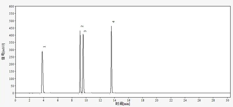 依利特新款的EClassical 3200液相色譜儀,搭配新款SinoPak BEH AQ-C18色譜柱,能很好的對咖啡因、可可堿、茶堿、黃嘌呤進(jìn)行分析,且峰形良好,滿足定性定量分析的要求。