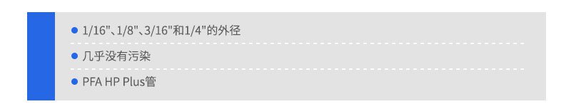 PFA HP Plus管是新產(chǎn)品,有1/16"和1/8"兩種規(guī)格,該聚合物具有Teflon PFA HP管無法超越的純度,而且對反復(fù)彎曲的承受能力更好,在含氟表面活性劑條件下耐用性更好。PFA HP Plus管比標(biāo)準(zhǔn)PFA HP管內(nèi)壁更平滑、更光潔。
