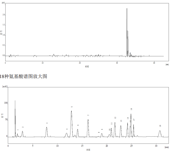 高清資料:18 種氨基酸混標分析高清譜圖(含各氨基酸峰標注、保留時間詳情)、實際培養(yǎng)基樣品檢測原始譜圖;